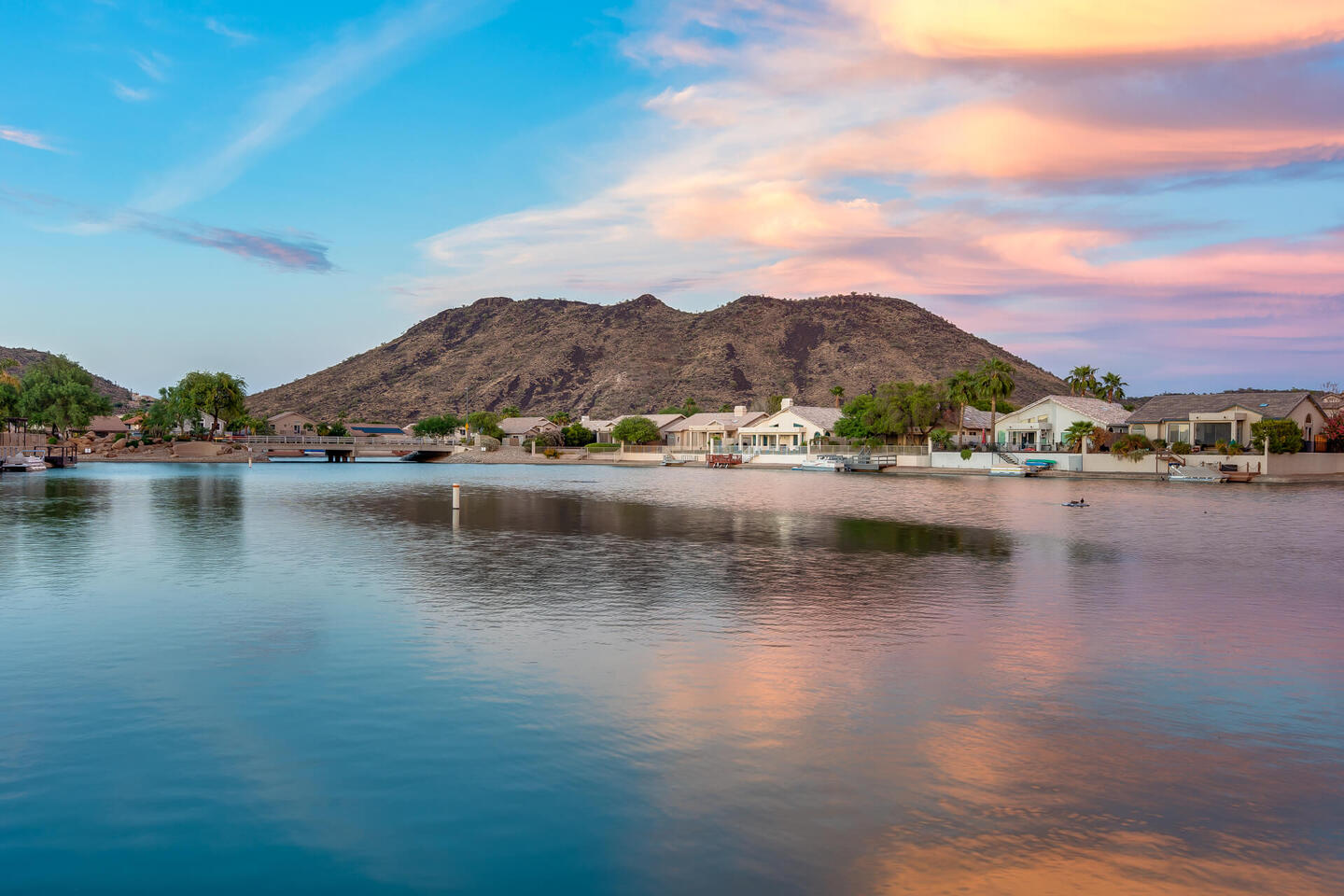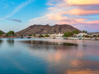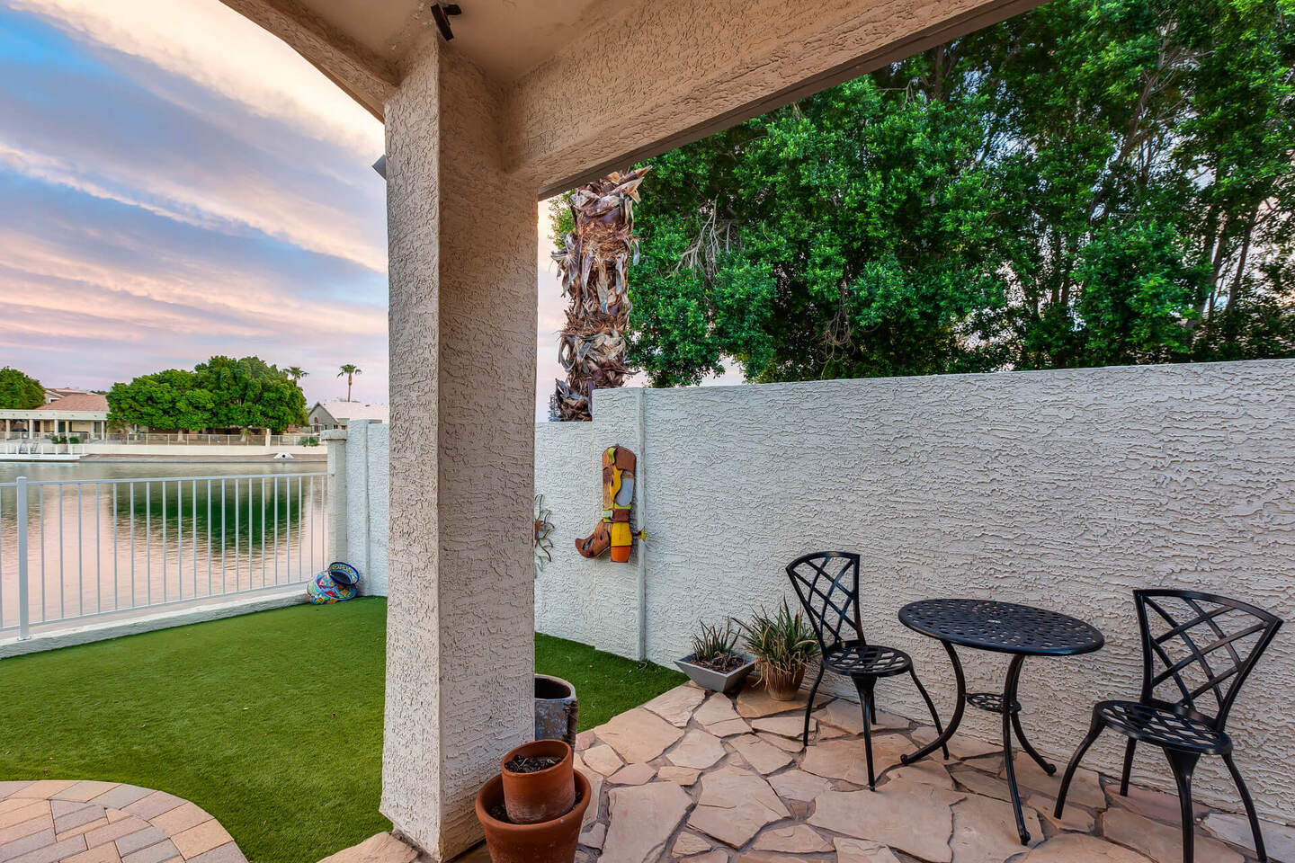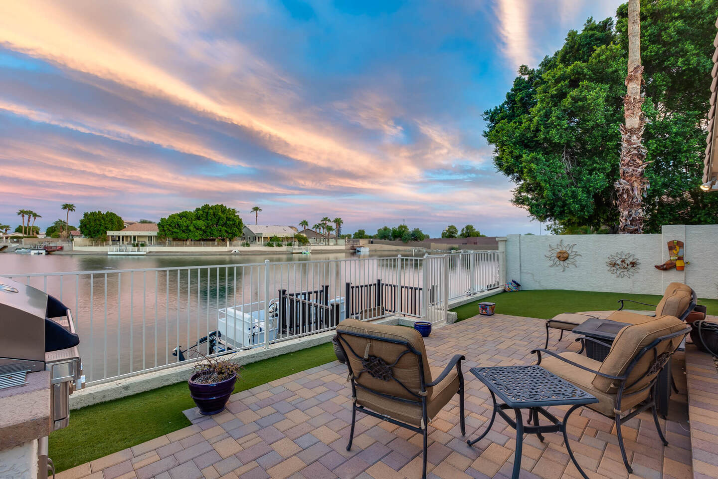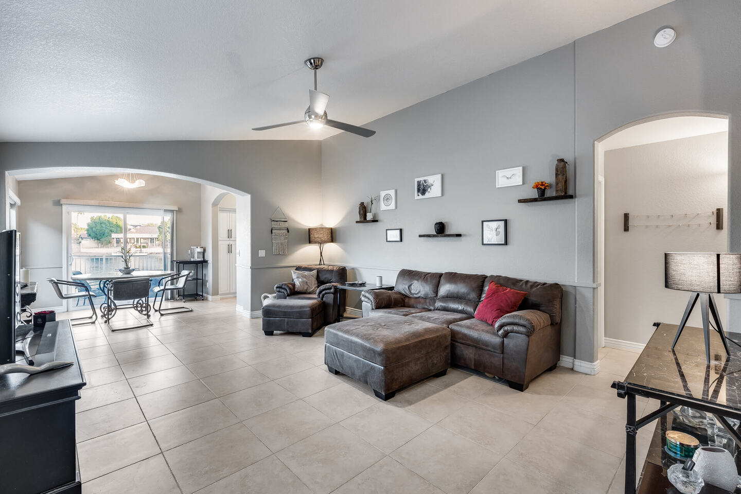 Perfect rare location with East facing backyard, Single level, truly updated home facing the wide mouth lake with 3 fountains and mountain views, on the longest lake in Arrowhead Lakes, just spectacular! Too many upgrades to list! New A/C & water heater in 2018, New roof being installed. New dock and pavered landscape in 2023, updated Kitchen and Baths. New windows throughout in 2019 with a new Patio door! Whole house water filtration system in 2020, new view fence. New epoxy garage floor with new a/c split and insulated garage door.