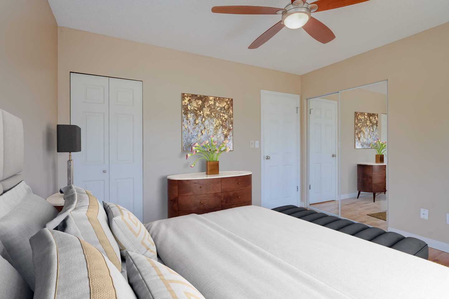 There is a 1 car garage, with a generous driveway for more space. We can allow 1 cat and/or 1 smaller sized dog. Please feel free to contact me to confirm.